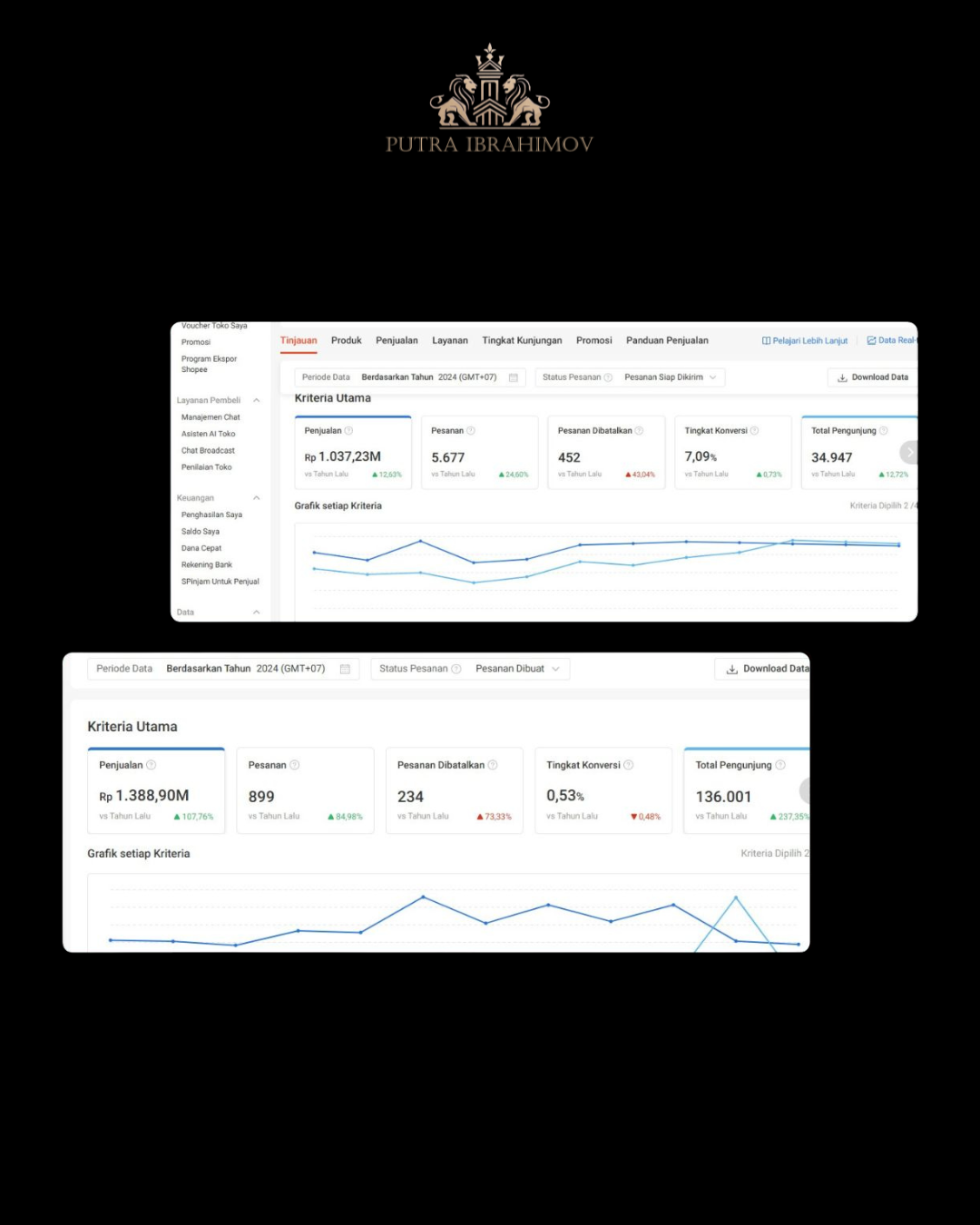 Dipercaya mengelola e-commerce CV Star Cosmetic Surabaya, saya berhasil menganalisa dan menata strategi penjualan online. Dalam waktu singkat kita berhasil menekan tingkat pembatalan dengan penguatan tim, memperbaiki respon dan interaksi admin serta CS, serta memusatkan penjualan pada toko utama, Star Cosmetic Surabaya, yang berkontribusi signifikan terhadap omzet dan performa ads. Sementara itu, toko Shine difokuskan pada peningkatan organik dan hanya mengikuti campaign serta event Shopee yang benar-benar relevan.