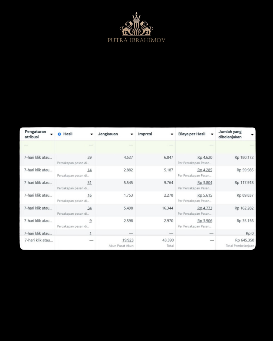 Rumah Cantik Kanata Kediri mempercayakan proses digital marketing kepada saya untuk peluncuran bisnis. Saya langsung merancang alokasi anggaran Rp 1,5 juta dengan rincian Rp 900 ribu untuk influencer nano & mikro lokal, Rp 600 ribu untuk iklan Meta Ads. Satu bulan campaign, seluruh jadwal booking penuh selama 30 hari. Bulan berikutnya, strategi maintenance diterapkan dengan campaign promo, kolaborasi influencer, dan aktivasi konten berkala, hasilnya, konsistensi brand premium dan pertumbuhan loyalitas pelanggan yang baik.